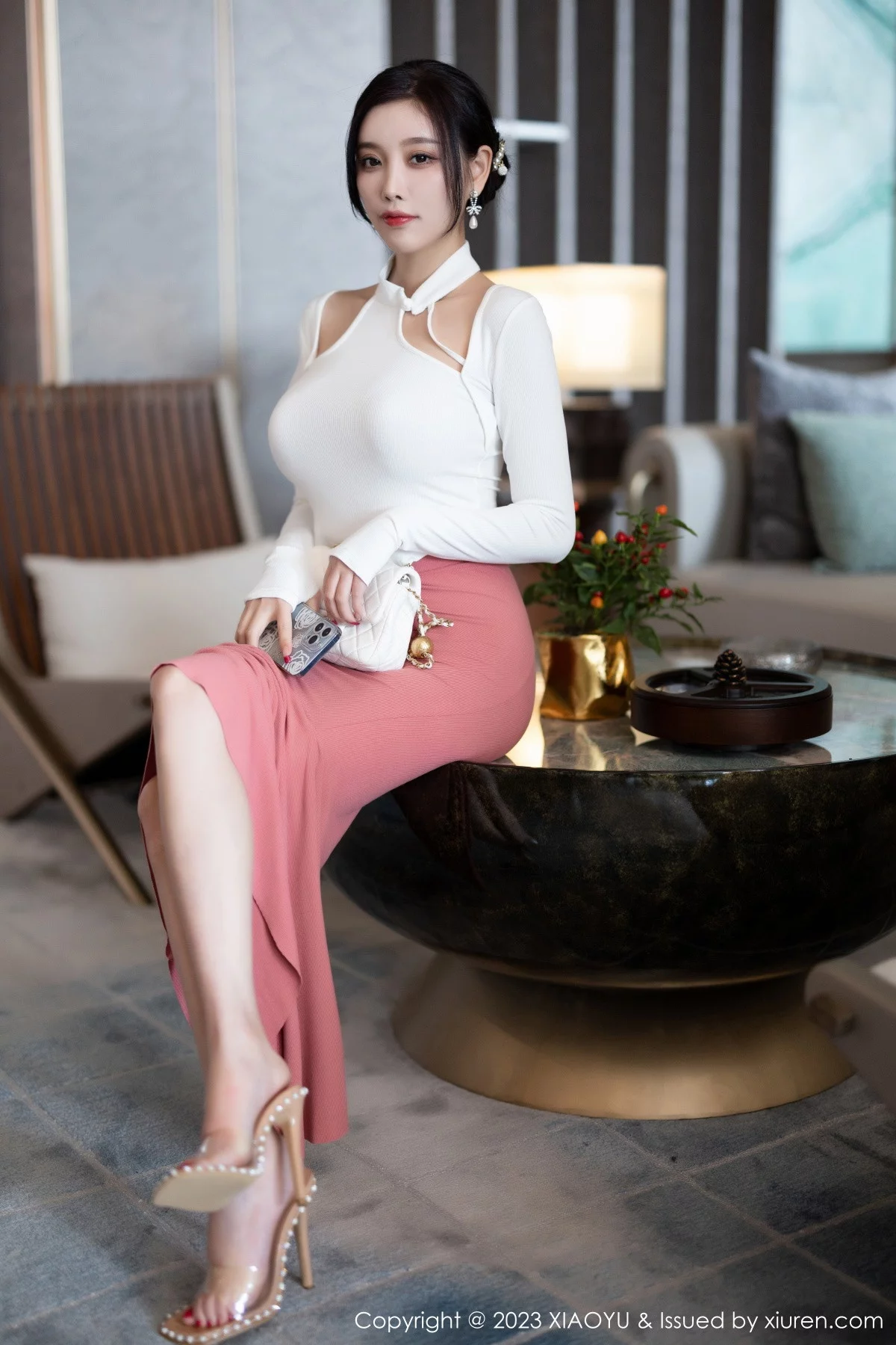 [XiaoYu画语界]Vol.965_女神杨晨晨Yome白色上衣配淡红长裙露吊坠内衣完美诱惑写真91P