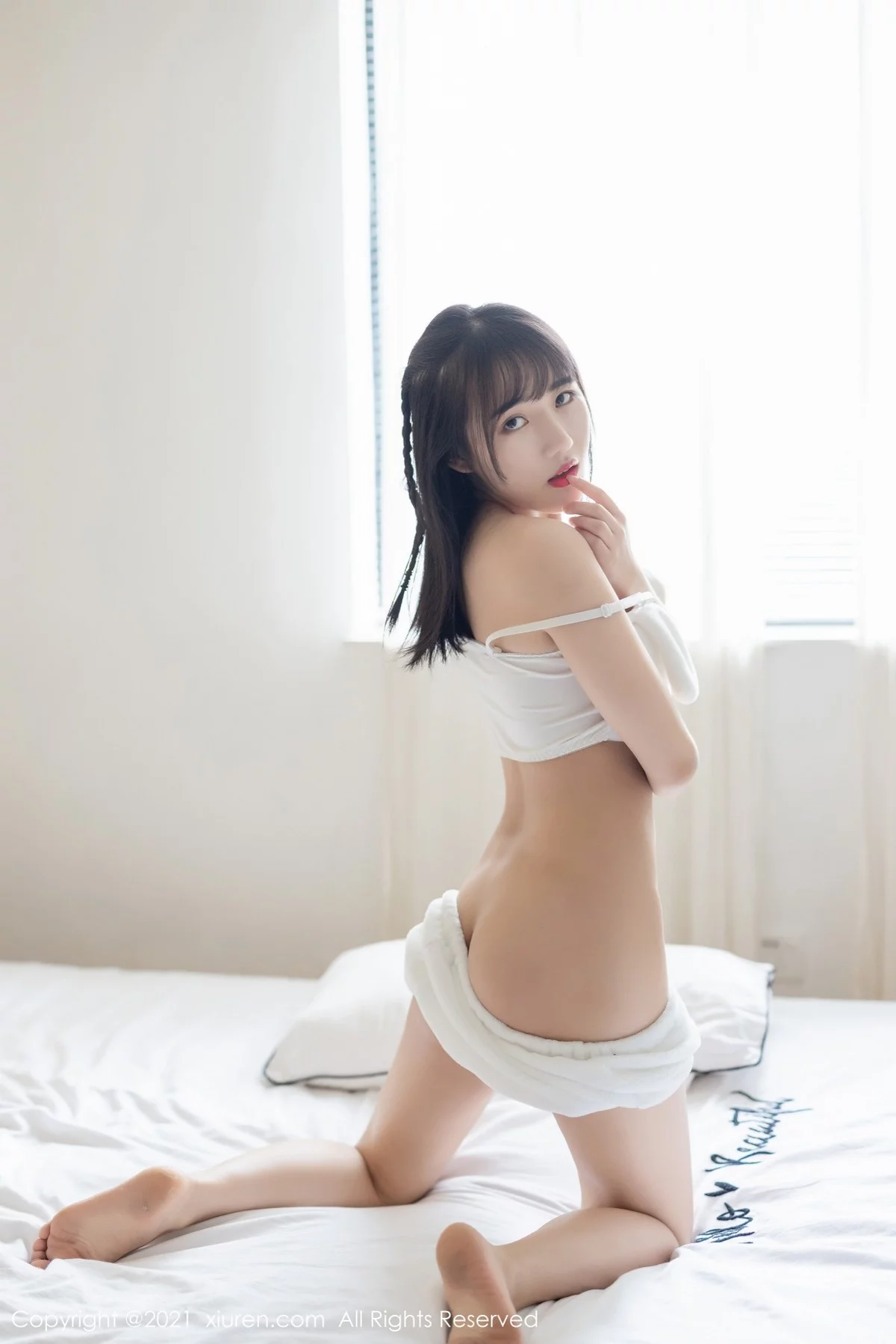 [XiuRen秀人网]No.3457_嫩模唐心居家私房性感白色睡衣半脱露翘臀撩人诱惑写真41P